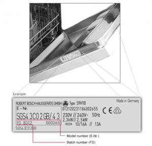 The affected dishwashers are certain models in the batch number range from FD 7901 to FD 8504. The appliance details can be found either engraved on the top or on a sticker on the left hand side of the inner part of the door (see picture below). Dishwashers which are outside this batch number range are not affected.