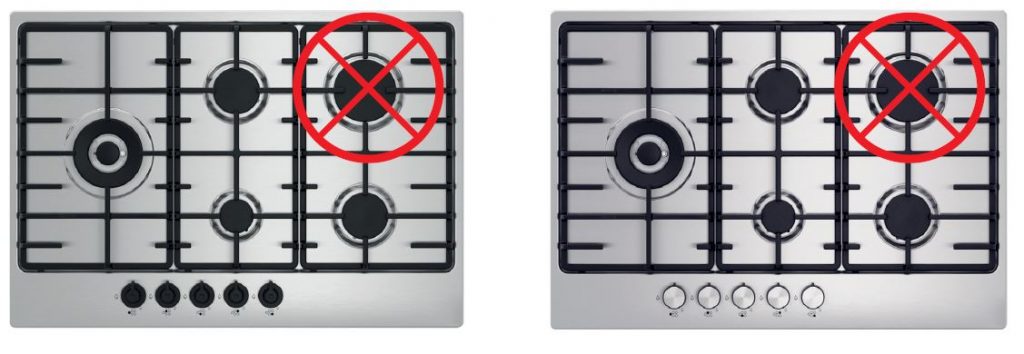 Customers are urged to stop using the rapid burner (hob) placed in the upper right corner as pictured until the repair service has been completed. All other burners are safe to use. There are no elevated risks of fires or explosions.