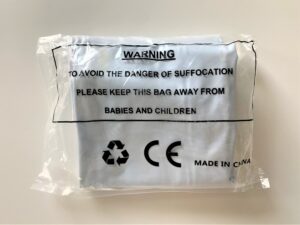 The risk associated with the product is that of suffocation. As the toy is delivered in a flexible plastic packaging which is not compliant, a child covering its nose and mouth with it could suffocate.