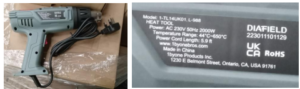 Product Safety Information Notice on Diafield Heat Gun sold on Amazon