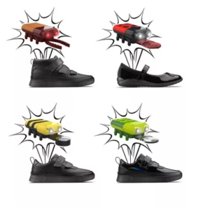 The toys, known as ‘Find its’, are torches in the form of insects and bugs. The brand is Clarks. The type/number of models are Vibrant Trail K Black Leather 26162072, Vibrant Glow K Black Patent 26162161, Vibrant Trail K Black Patent 26162242, Vibrant Glow K Black Leather 26162262 and Vibrant Oak K Black Leather 26162863. All toys included with the stated product codes are potentially affected.
