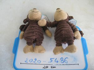There is a choking risk with both the soft toy character from the film Totoro (brand, Type/Model Number, Batch Number, Bar Code all unknown) and with the soft toy monkey on a key ring (brand KO BONNIE, Type/Model Number: N#310).