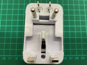 The risk presented by the product is electric shock. During normal use, the US pin breaks off and stays in the socket. When trying to get the US pin out of the socket with their fingers, the user suffers an electric shock.