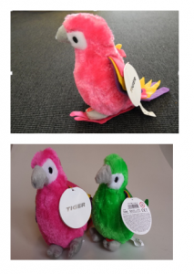 Tiger Stores Ireland are recalling a soft-filled Parrot with electric sound unit inside the body. There is a potential for a child to access the inner unit and filling in some cases as the stitching may not be of sufficient quality. The plush toys come in a range of bright colours and the item number is 1701214.